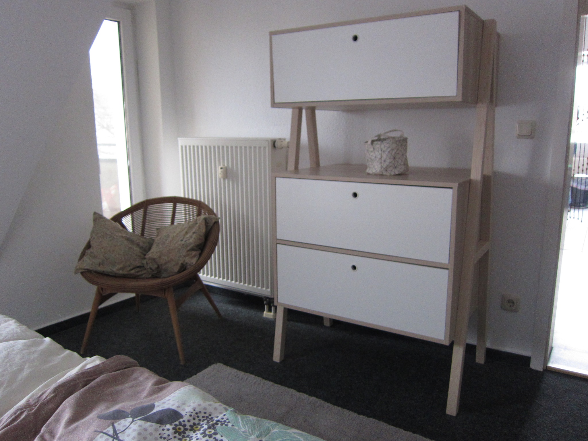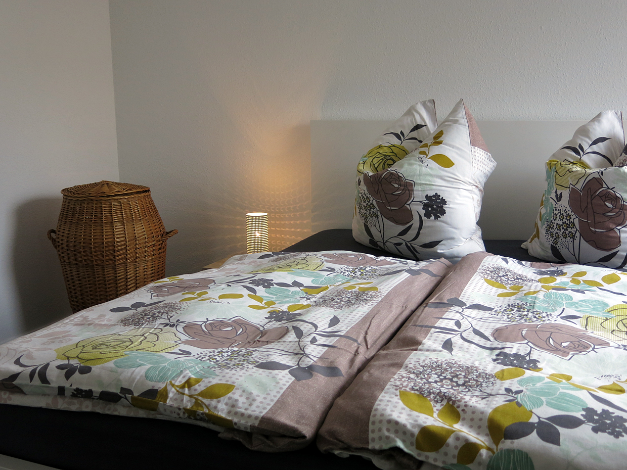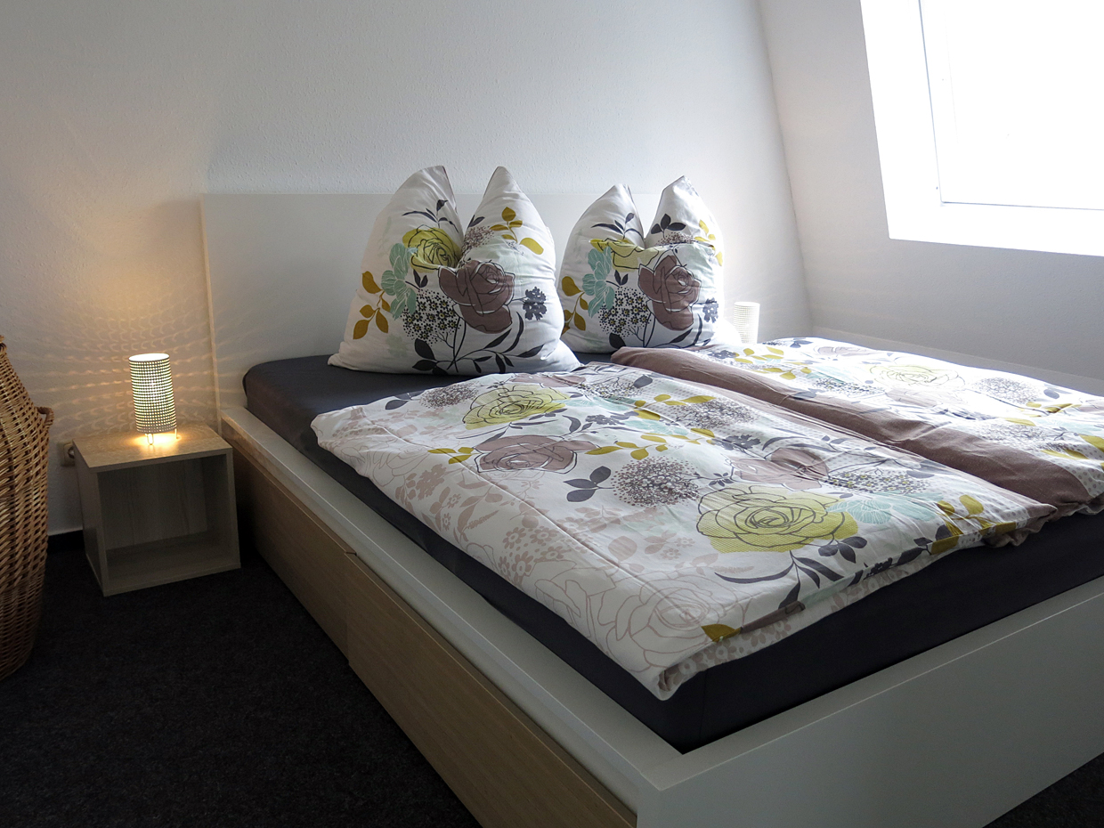 Das Schlafzimmer verfügt über ein großes Doppelbett und einen Kleiderschrank, sowie eine Kommode und einen Sessel. Im Wohnzimmer steht eine bequeme Schlafcouch bereit (Liegefläche 1,40 m x 2,00 m).