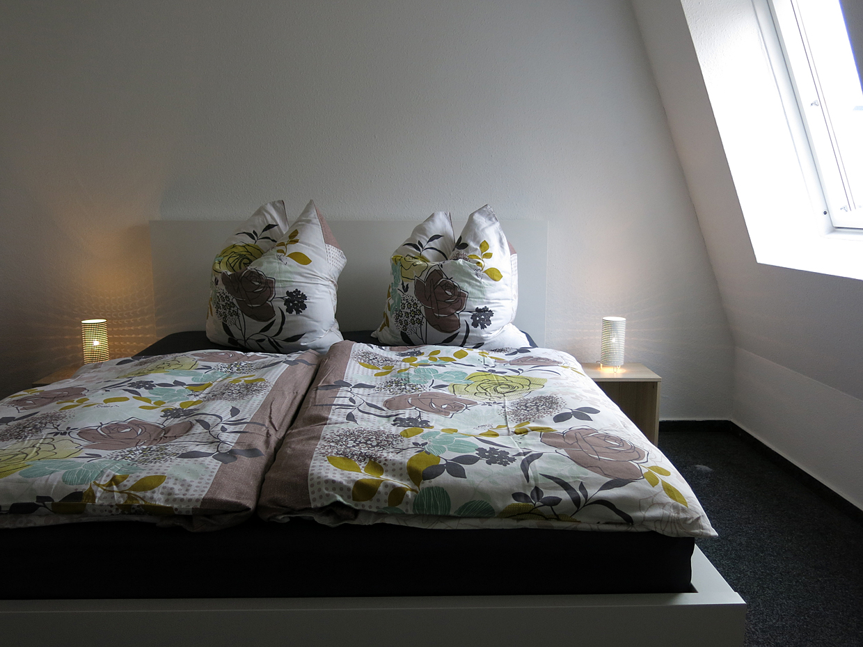 Das Schlafzimmer verfügt über ein großes Doppelbett und einen Kleiderschrank, sowie eine Kommode und einen Sessel. Im Wohnzimmer steht eine bequeme Schlafcouch bereit (Liegefläche 1,40 m x 2,00 m).